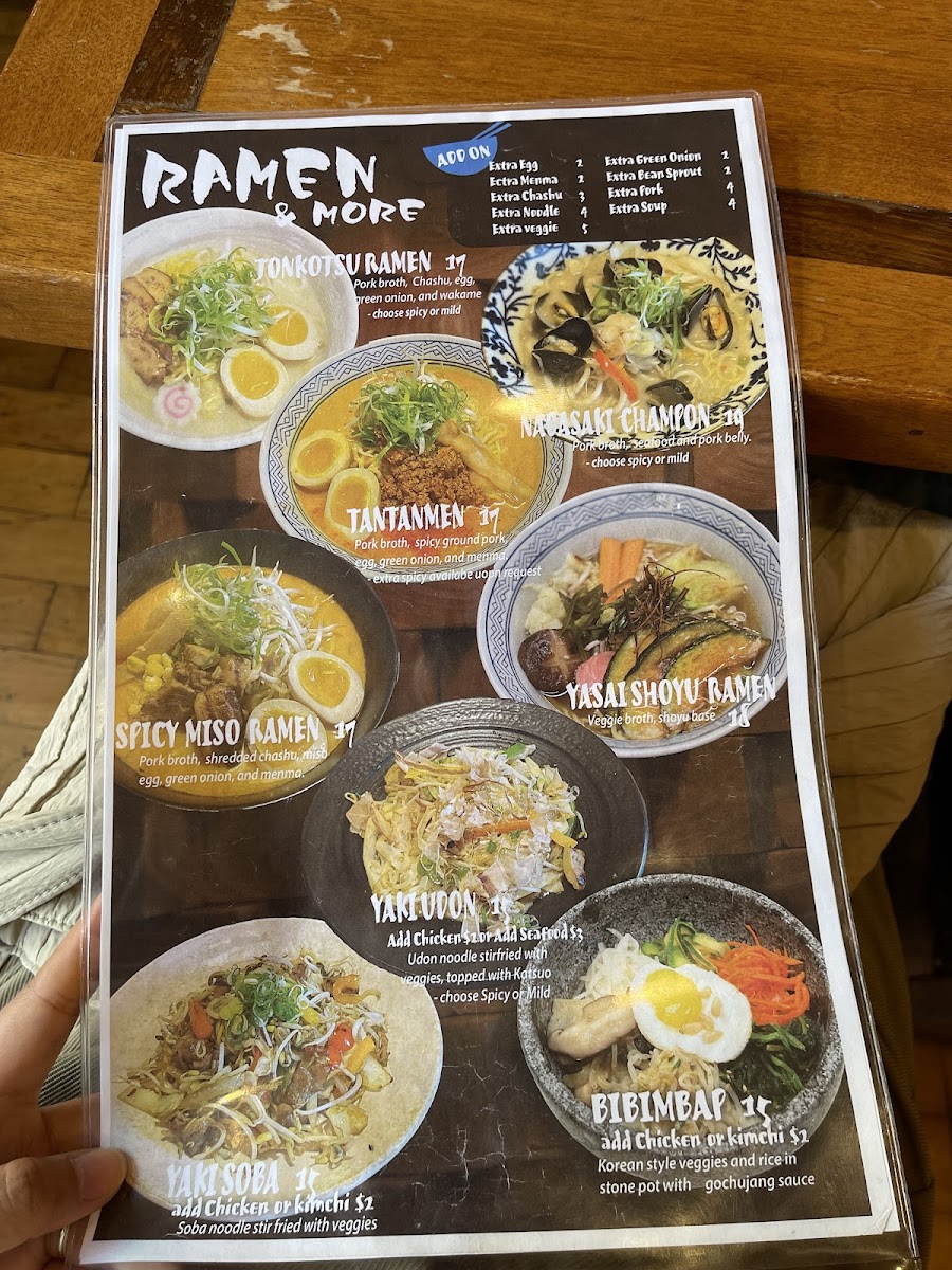 Tantanmen: This ramen is a spice lover’s dream with ground pork and optional extra heat.